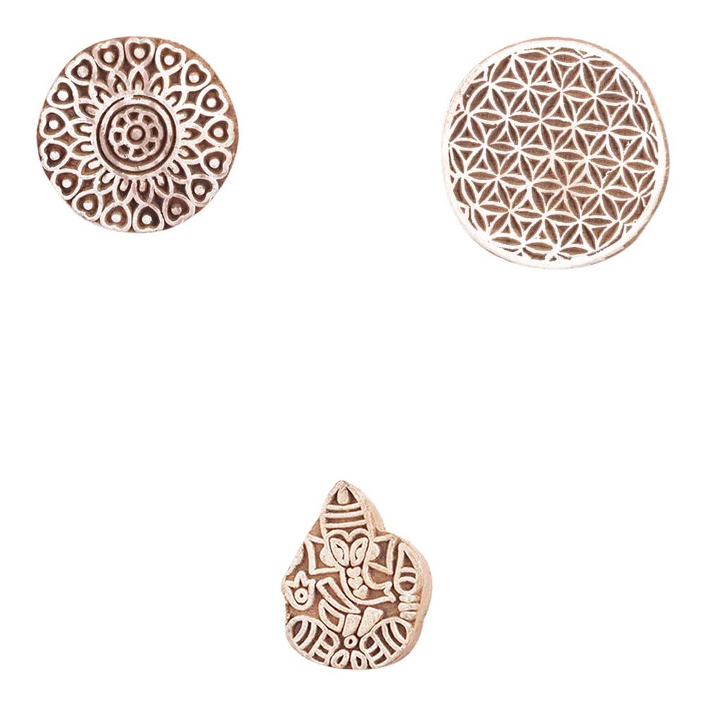 Set of 3 Piece New Mix Wooden Printing Block. Ideal for use on Fabric, Paper, Canvas, etc. These Blocks can be use to Print with Oil Colors, Fabric Colors, Water Colors, Acrylic Colors and Vegetable Colors.