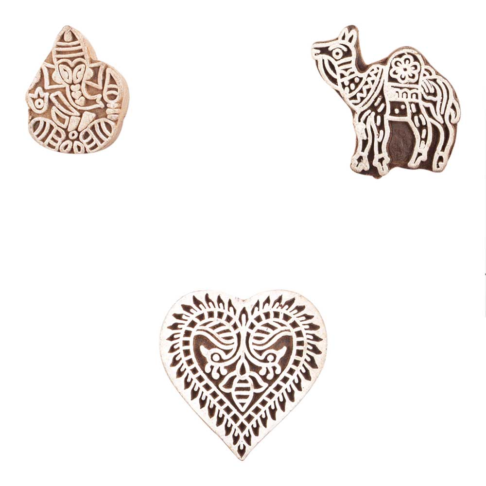 Set of 3 Piece New Mix Wooden Printing Block. Ideal for use on Fabric, Paper, Canvas, etc. These Blocks can be use to Print with Oil Colors, Fabric Colors, Water Colors, Acrylic Colors and Vegetable Colors.