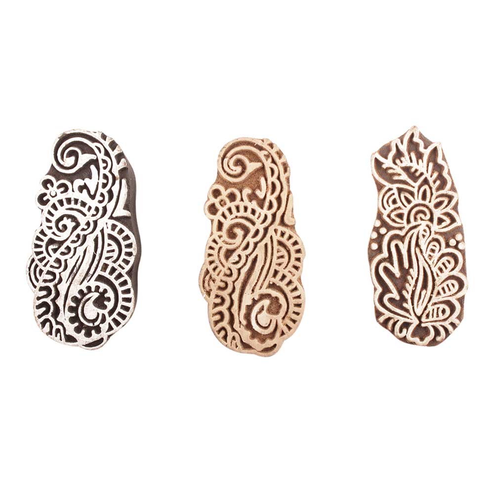 Set of 3 Piece New Mix Wooden Printing Block. Ideal for use on Fabric, Paper, Canvas, etc. These Blocks can be use to Print with Oil Colors, Fabric Colors, Water Colors, Acrylic Colors and Vegetable Colors.