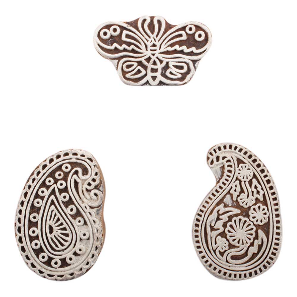 Set of 3 Piece New Mix Wooden Printing Block. Ideal for use on Fabric, Paper, Canvas, etc. These Blocks can be use to Print with Oil Colors, Fabric Colors, Water Colors, Acrylic Colors and Vegetable Colors.