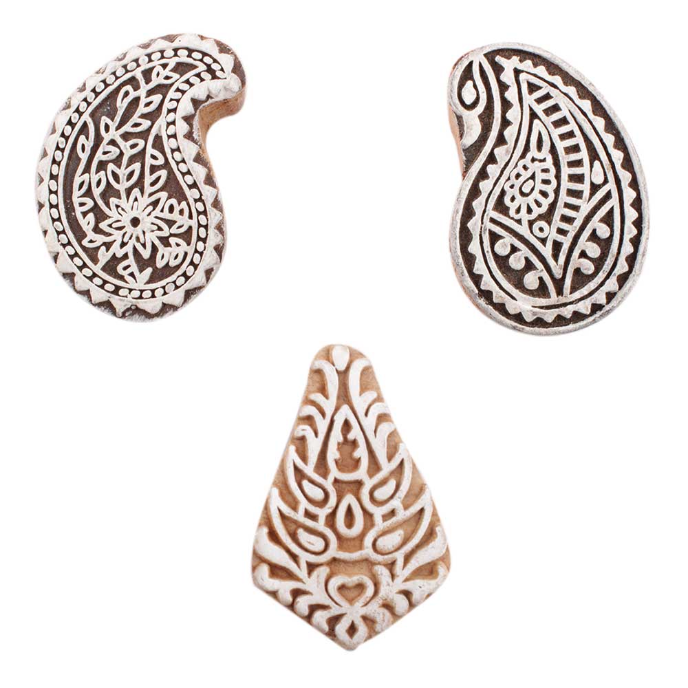 Set of 3 Piece New Mix Wooden Printing Block. Ideal for use on Fabric, Paper, Canvas, etc. These Blocks can be use to Print with Oil Colors, Fabric Colors, Water Colors, Acrylic Colors and Vegetable Colors.