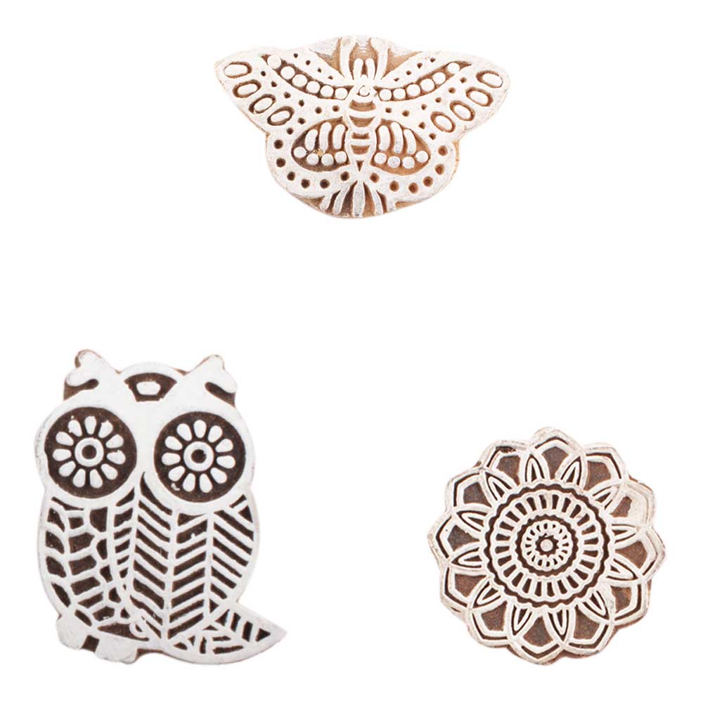 Set of 3 Piece New Mix Wooden Printing Block. Ideal for use on Fabric, Paper, Canvas, etc. These Blocks can be use to Print with Oil Colors, Fabric Colors, Water Colors, Acrylic Colors and Vegetable Colors.