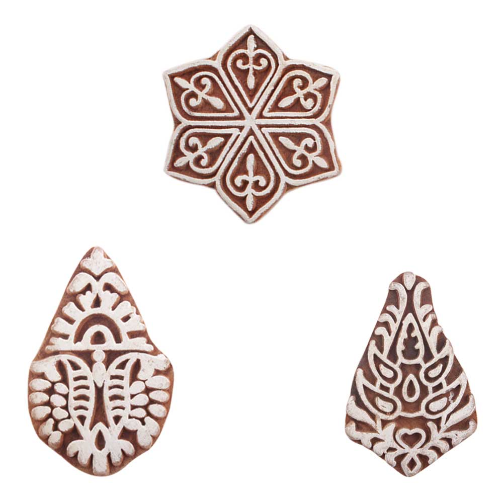 Set of 3 Piece New Mix Wooden Printing Blocks. Ideal for use on Fabric, Paper, Canvas, etc. These Blocks can be use to Print with Oil Colors, Fabric Colors, Water Colors, Acrylic Colors and Vegetable Colors.