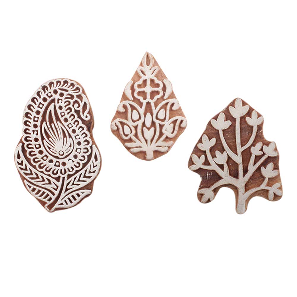 Set of 3 Piece New Mix Wooden Printing Blocks. Ideal for use on Fabric, Paper, Canvas, etc. These Blocks can be use to Print with Oil Colors, Fabric Colors, Water Colors, Acrylic Colors and Vegetable Colors.