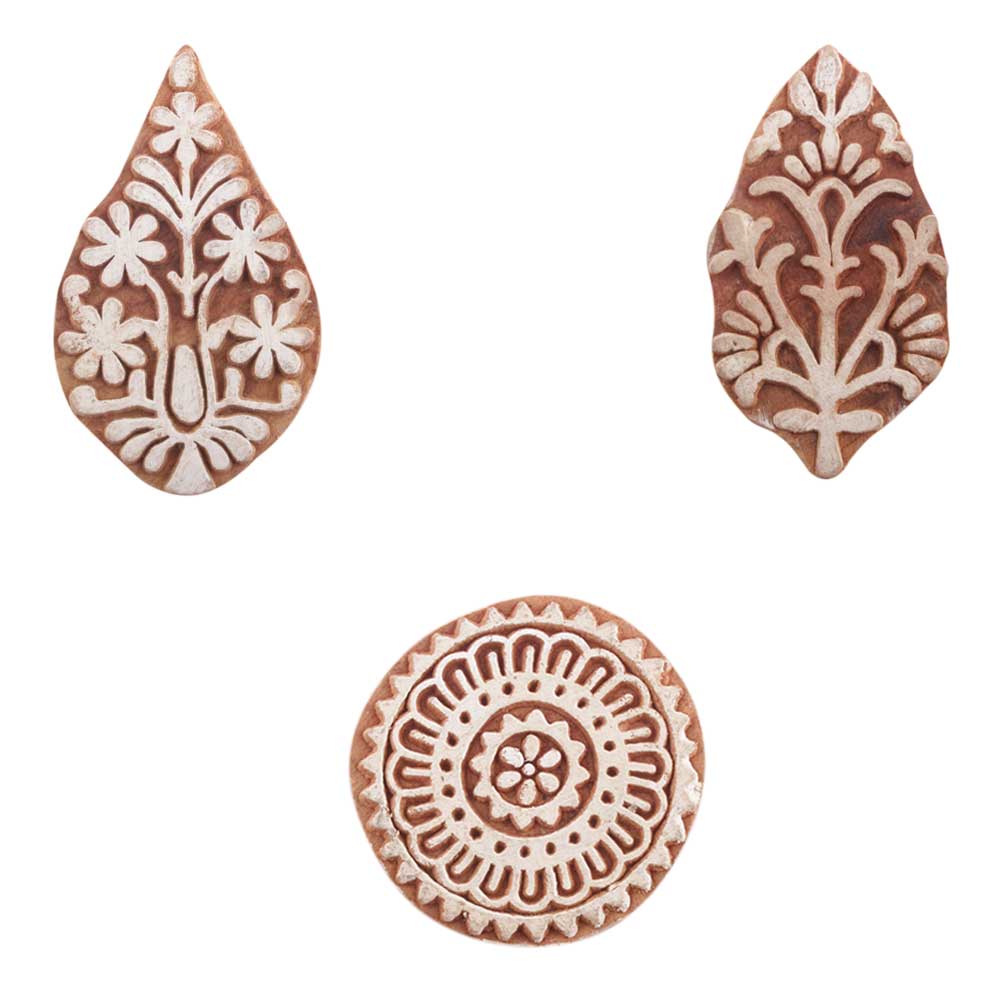 Set of 3 Piece New Mix Wooden Printing Blocks. Ideal for use on Fabric, Paper, Canvas, etc. These Blocks can be use to Print with Oil Colors, Fabric Colors, Water Colors, Acrylic Colors and Vegetable Colors.