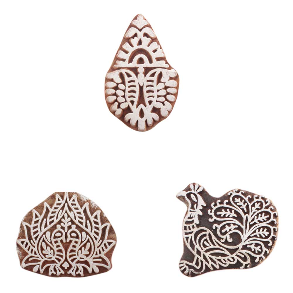 Set of 3 Piece New Mix Wooden Printing Blocks. Ideal for use on Fabric, Paper, Canvas, etc. These Blocks can be use to Print with Oil Colors, Fabric Colors, Water Colors, Acrylic Colors and Vegetable Colors.