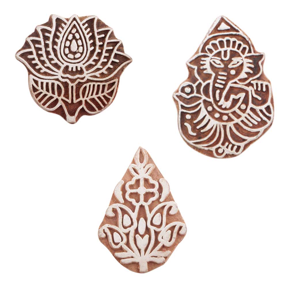 Set of 3 Piece New Mix Wooden Printing Blocks. Ideal for use on Fabric, Paper, Canvas, etc. These Blocks can be use to Print with Oil Colors, Fabric Colors, Water Colors, Acrylic Colors and Vegetable Colors.