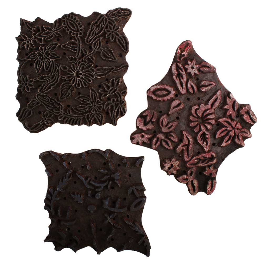Set of 3 Piece New Mix Wooden Printing Block. Ideal for Using on Fabric, Paper, Canvas, etc. These Blocks can be use to Print with Oil Colors, Fabric Colors, Water Colors, Acrylic Colors and Vegetable Colors.