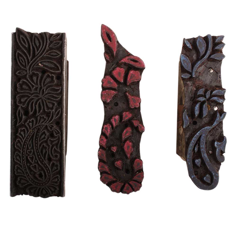 Set of 3 Piece New Mix Wooden Printing Block. Ideal for Using on Fabric, Paper, Canvas, etc. These Blocks can be use to Print with Oil Colors, Fabric Colors, Water Colors, Acrylic Colors and Vegetable Colors.