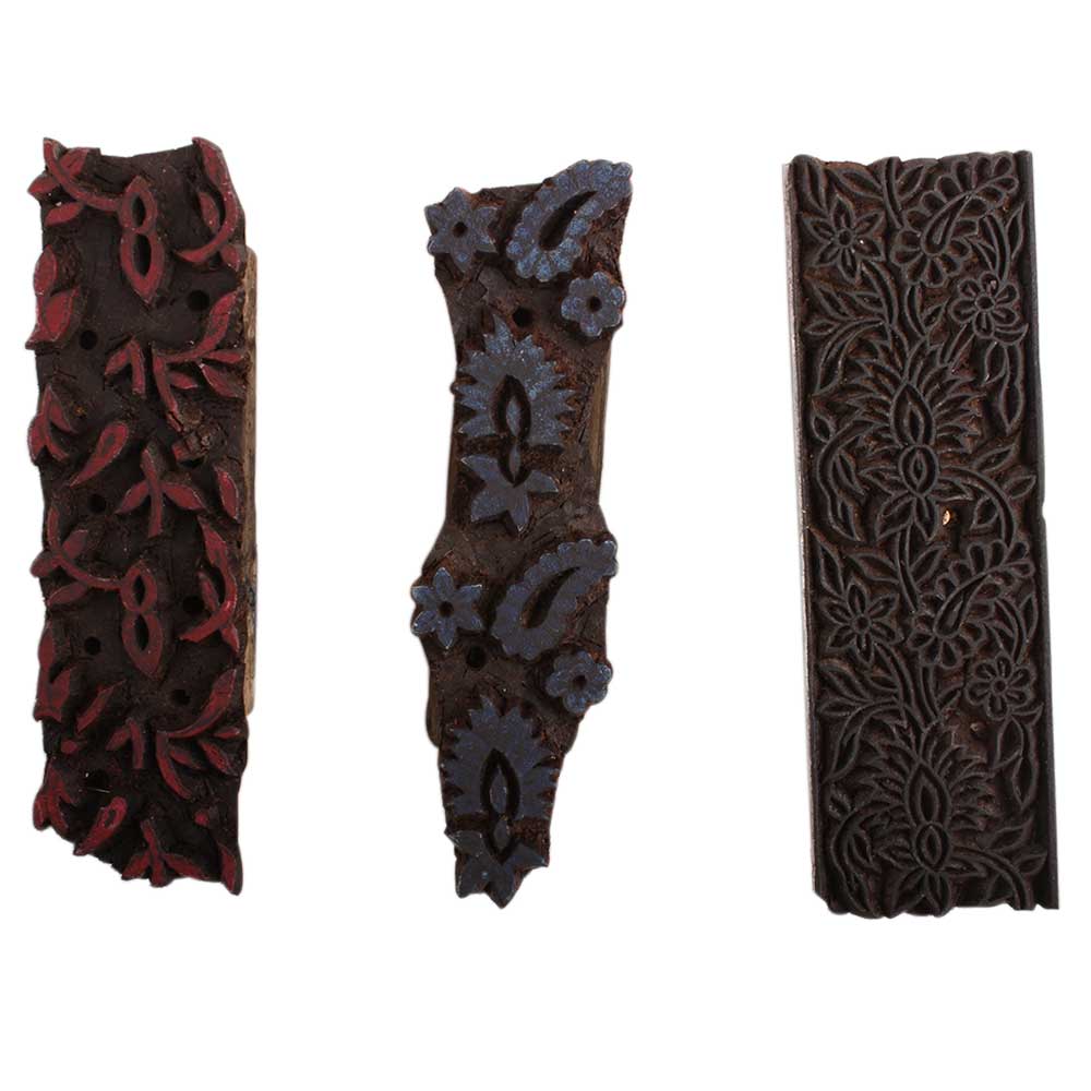 Set of 3 Piece New Mix Wooden Printing Block. Ideal for Using on Fabric, Paper, Canvas, etc. These Blocks can be use to Print with Oil Colors, Fabric Colors, Water Colors, Acrylic Colors and Vegetable Colors.