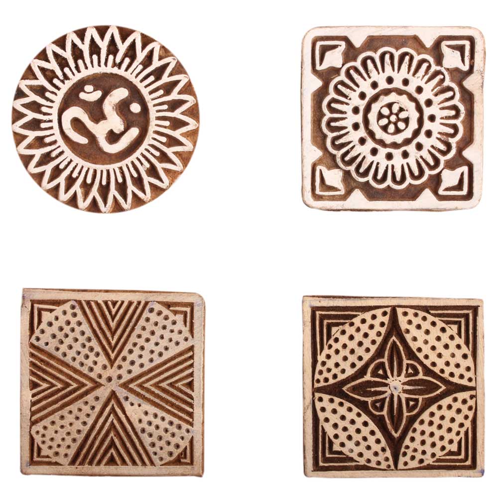 Set of 4 Piece New Mix Wooden Printing Block. Ideal for use on Fabric, Paper, Canvas, etc. These Blocks can be use to Print with Oil Colors, Fabric Colors, Water Colors, Acrylic Colors and Vegetable Colors.