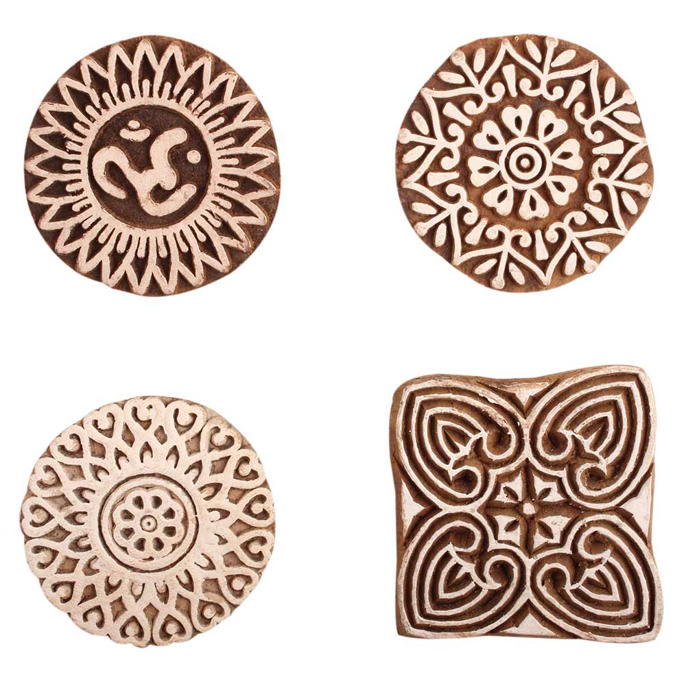 Set of 4 Piece New Mix Wooden Printing Block. Ideal for use on Fabric, Paper, Canvas, etc. These Blocks can be use to Print with Oil Colors, Fabric Colors, Water Colors, Acrylic Colors and Vegetable Colors.