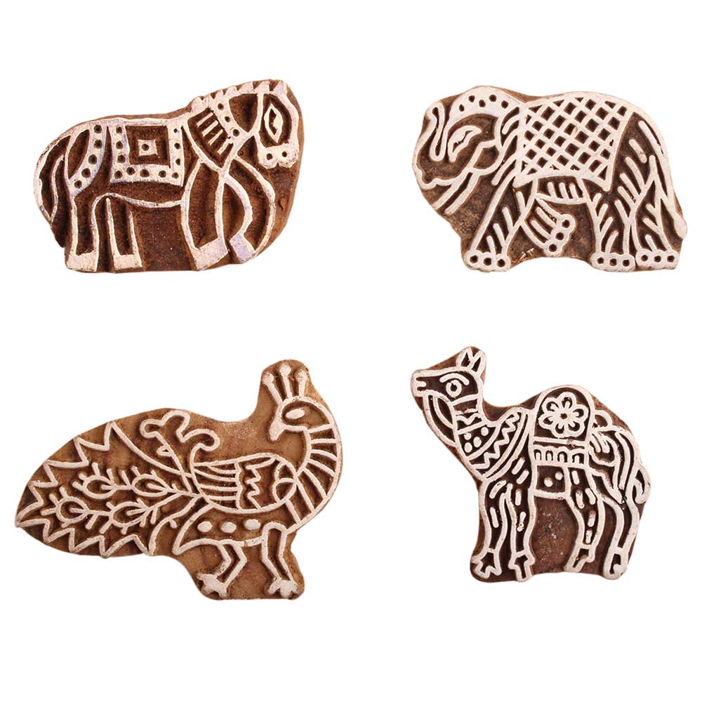 Set of 4 Piece New Mix Wooden Printing Block. Ideal for use on Fabric, Paper, Canvas, etc. These Blocks can be use to Print with Oil Colors, Fabric Colors, Water Colors, Acrylic Colors and Vegetable Colors.