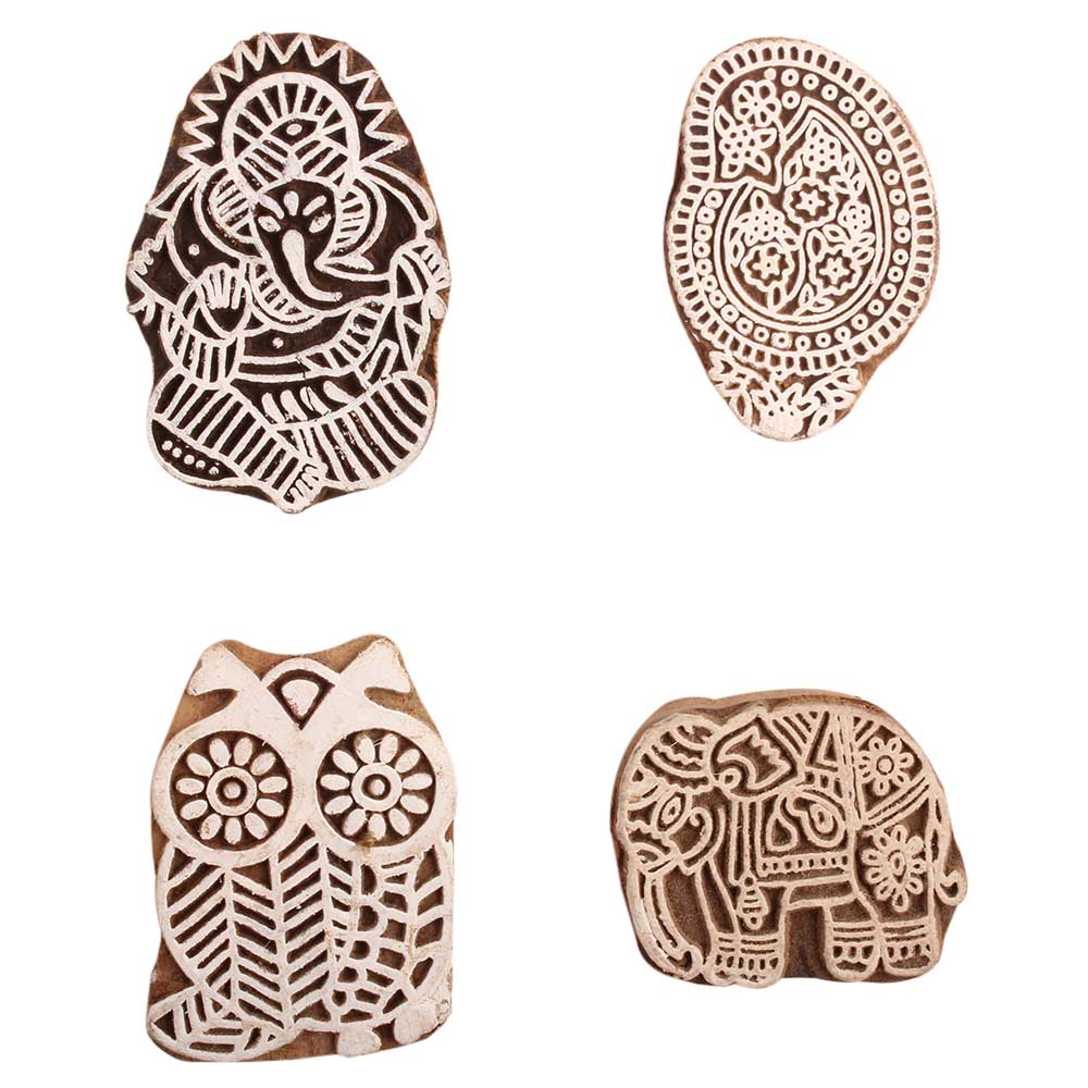 Set of 4 Piece New Mix Wooden Printing Block. Ideal for use on Fabric, Paper, Canvas, etc. These Blocks can be use to Print with Oil Colors, Fabric Colors, Water Colors, Acrylic Colors and Vegetable Colors.