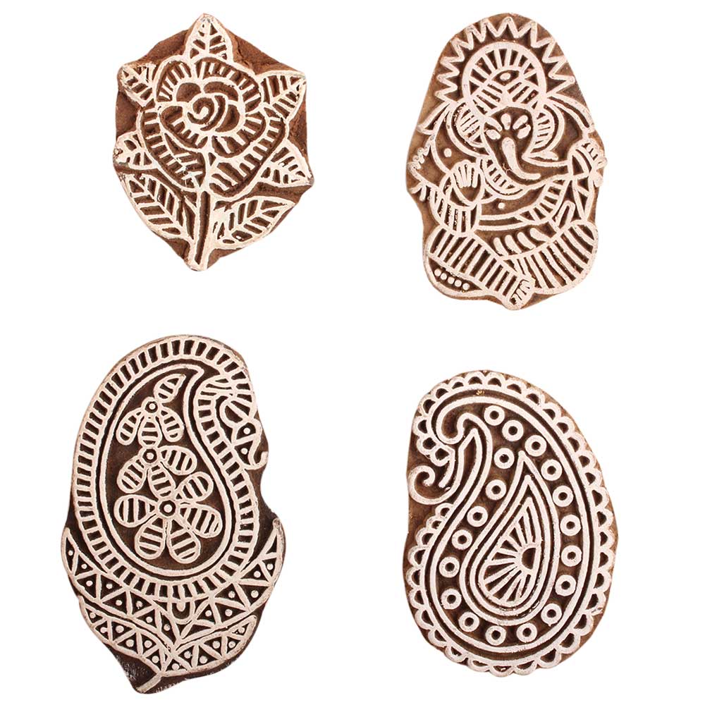 Set of 4 Piece New Mix Wooden Printing Block. Ideal for use on Fabric, Paper, Canvas, etc. These Blocks can be use to Print with Oil Colors, Fabric Colors, Water Colors, Acrylic Colors and Vegetable Colors.