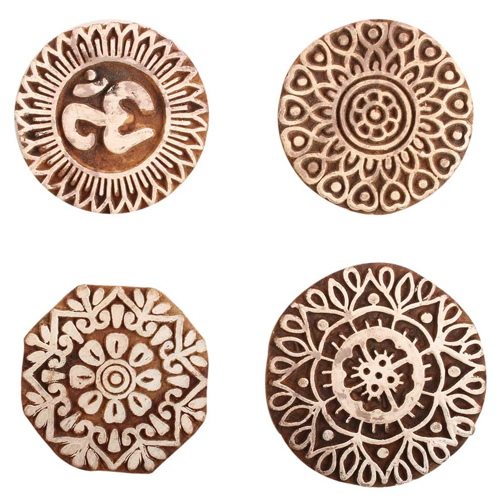 Set of 4 Piece New Mix Wooden Printing Block. Ideal for use on Fabric, Paper, Canvas, etc. These Blocks can be use to Print with Oil Colors, Fabric Colors, Water Colors, Acrylic Colors and Vegetable Colors.