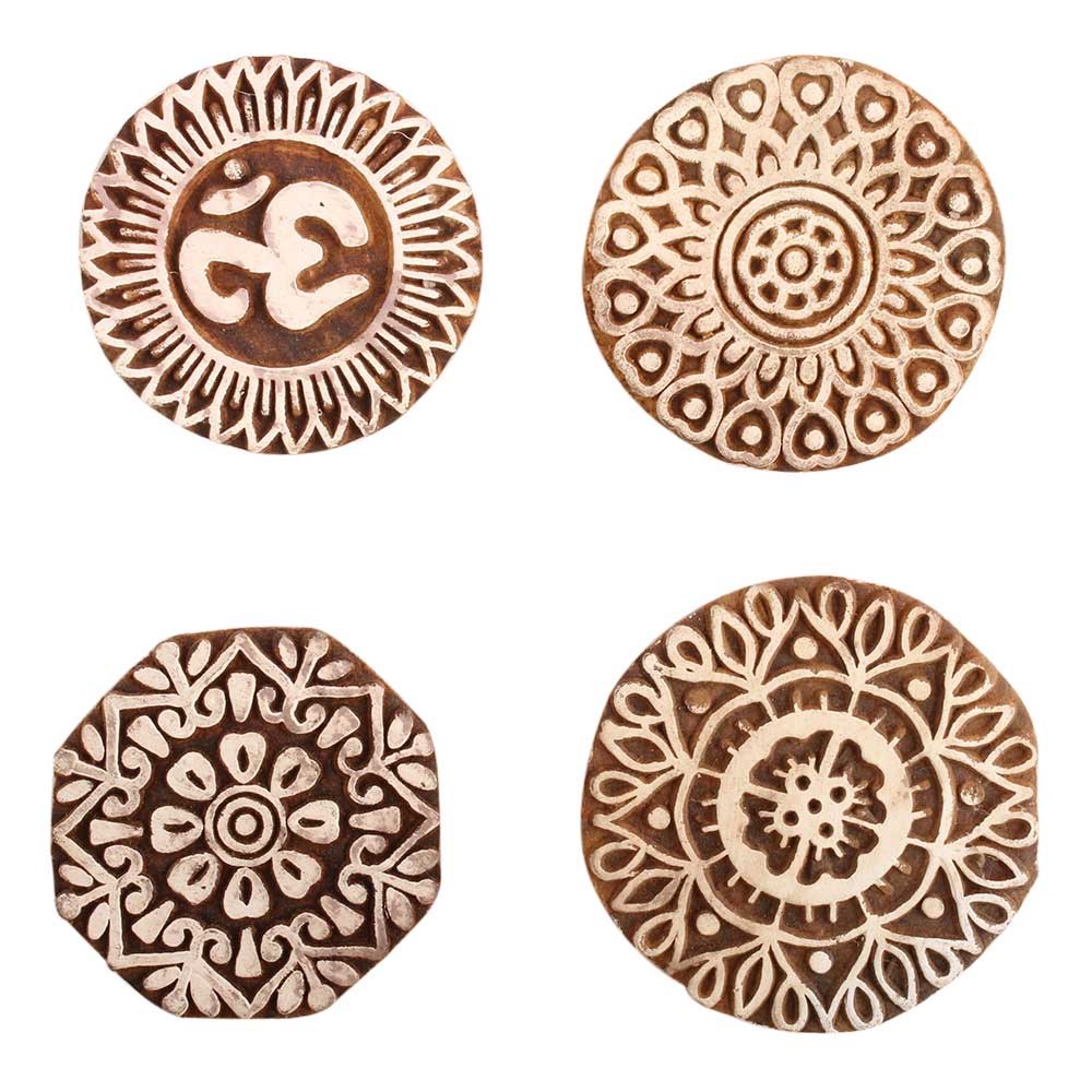 Set of 4 Piece New Mix Wooden Printing Block. Ideal for use on Fabric, Paper, Canvas, etc. These Blocks can be use to Print with Oil Colors, Fabric Colors, Water Colors, Acrylic Colors and Vegetable Colors.