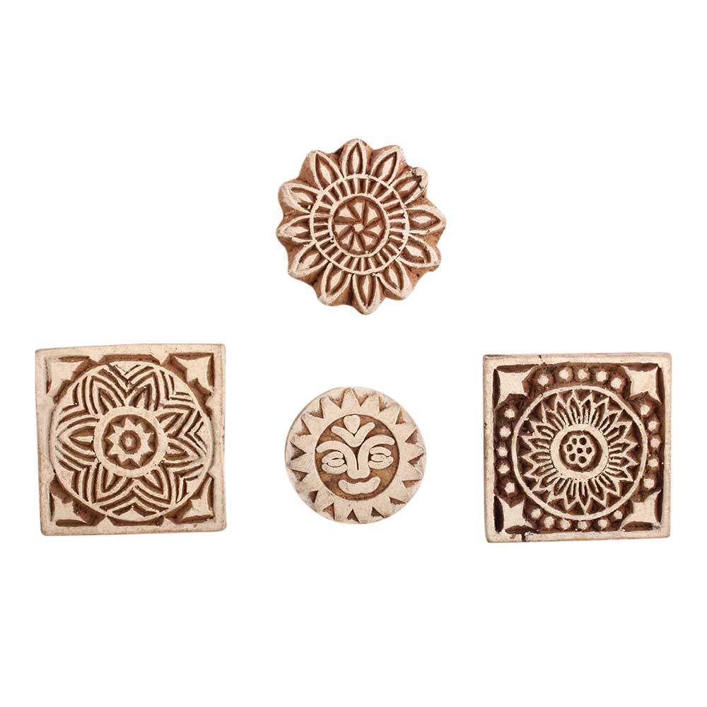 Set of 4 Piece New Mix Wooden Printing Block. Ideal for use on Fabric, Paper, Canvas, etc. These Blocks can be use to Print with Oil Colors, Fabric Colors, Water Colors, Acrylic Colors and Vegetable Colors.