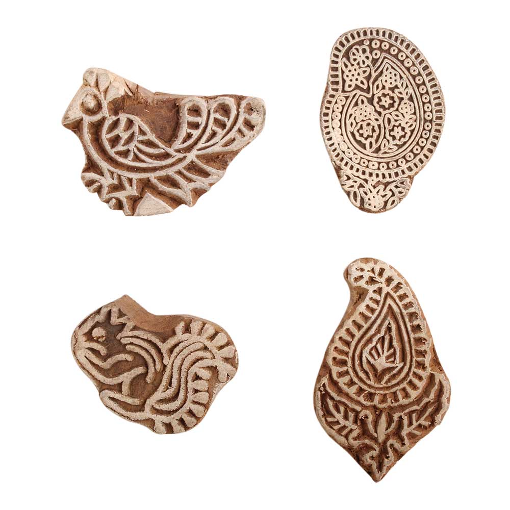 Set of 4 Piece New Mix Wooden Printing Block. Ideal for use on Fabric, Paper, Canvas, etc. These Blocks can be use to Print with Oil Colors, Fabric Colors, Water Colors, Acrylic Colors and Vegetable Colors.