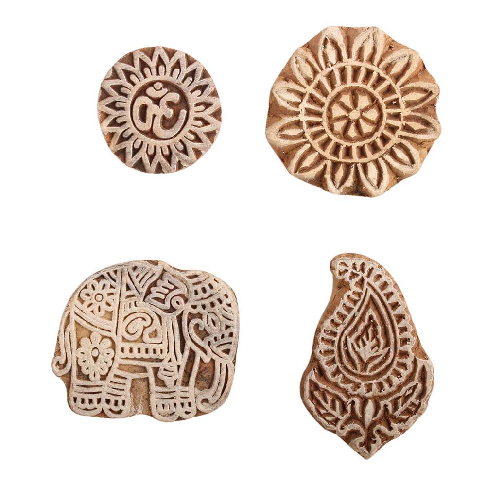 Set of 4 Piece New Mix Wooden Printing Block. Ideal for use on Fabric, Paper, Canvas, etc. These Blocks can be use to Print with Oil Colors, Fabric Colors, Water Colors, Acrylic Colors and Vegetable Colors.
