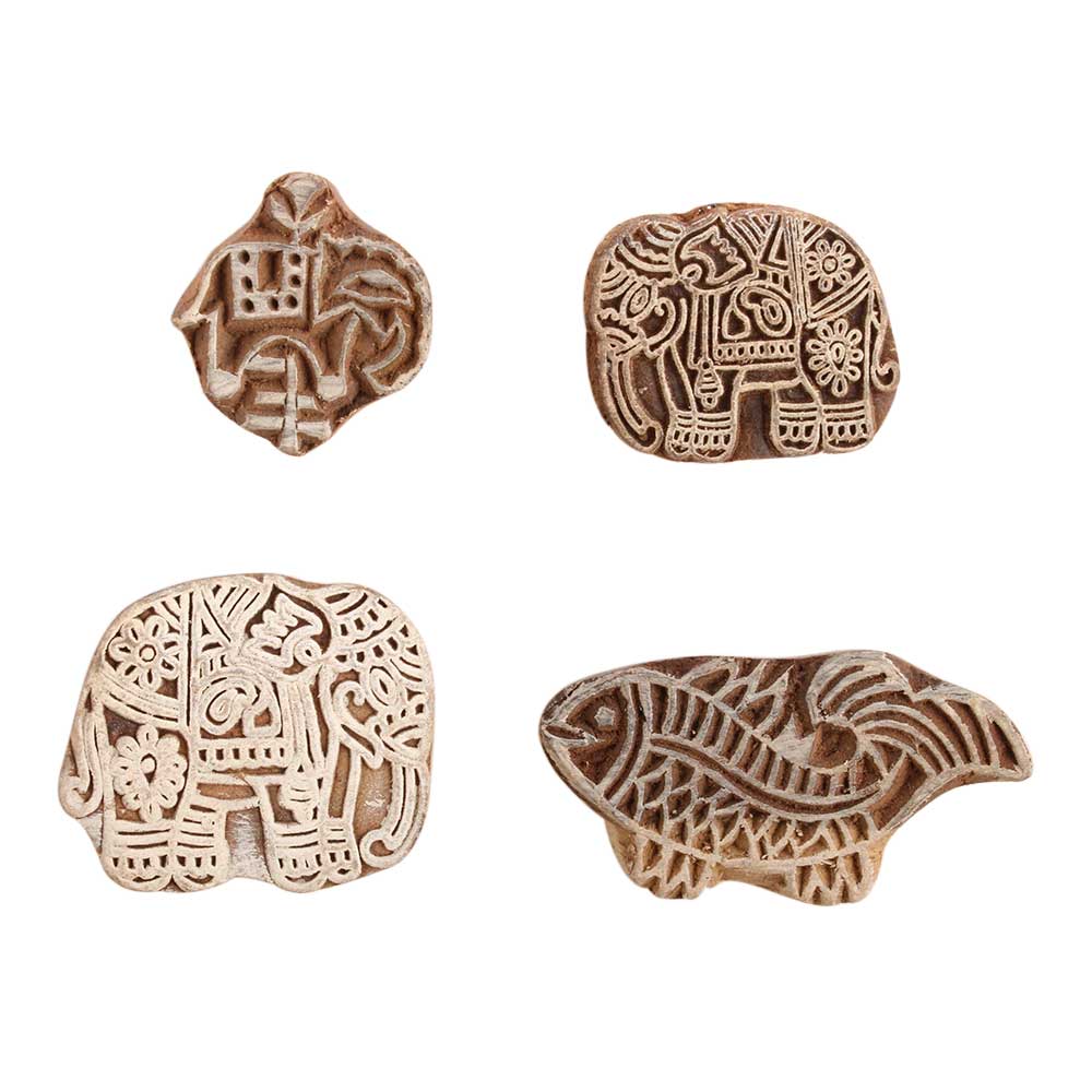 Set of 4 Piece New Mix Wooden Printing Block. Ideal for use on Fabric, Paper, Canvas, etc. These Blocks can be use to Print with Oil Colors, Fabric Colors, Water Colors, Acrylic Colors and Vegetable Colors.