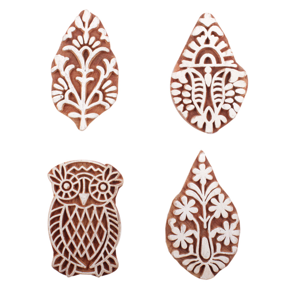 Set of 4 Piece New Mix Wooden Printing Block. Ideal for use on Fabric, Paper, Canvas, etc. These Blocks can be use to Print with Oil Colors, Fabric Colors, Water Colors, Acrylic Colors and Vegetable Colors.