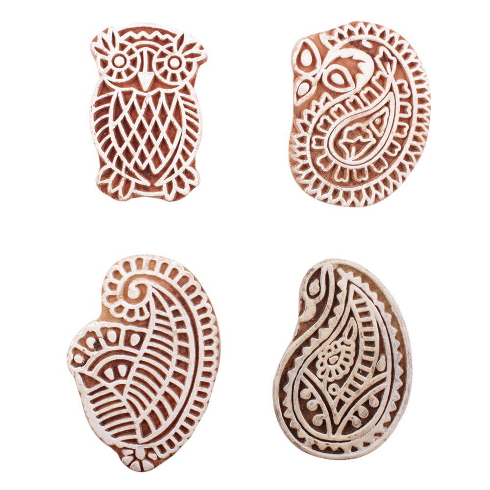 Set of 4 Piece New Mix Wooden Printing Block. Ideal for use on Fabric, Paper, Canvas, etc. These Blocks can be use to Print with Oil Colors, Fabric Colors, Water Colors, Acrylic Colors and Vegetable Colors.