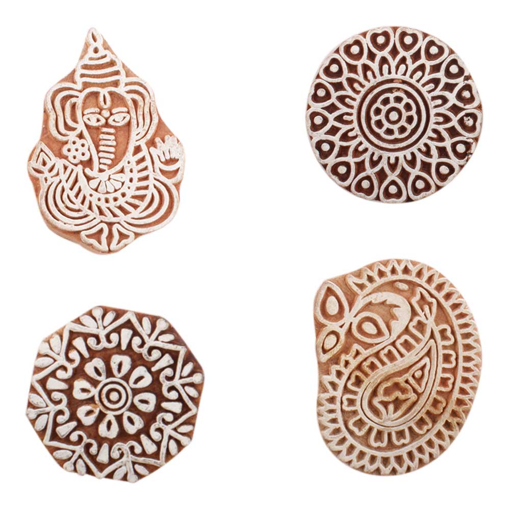 Set of 4 Piece New Mix Wooden Printing Block. Ideal for use on Fabric, Paper, Canvas, etc. These Blocks can be use to Print with Oil Colors, Fabric Colors, Water Colors, Acrylic Colors and Vegetable Colors.
