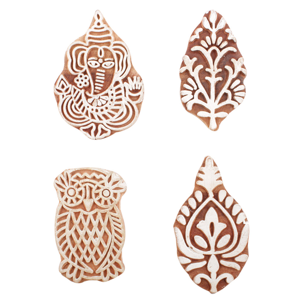 Set of 4 Piece New Mix Wooden Printing Block. Ideal for use on Fabric, Paper, Canvas, etc. These Blocks can be use to Print with Oil Colors, Fabric Colors, Water Colors, Acrylic Colors and Vegetable Colors.