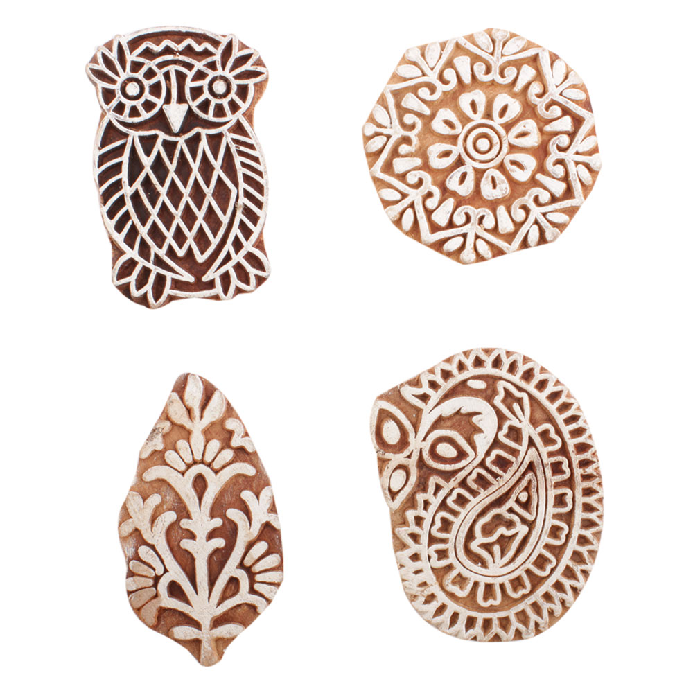 Set of 4 Piece New Mix Wooden Printing Block. Ideal for use on Fabric, Paper, Canvas, etc. These Blocks can be use to Print with Oil Colors, Fabric Colors, Water Colors, Acrylic Colors and Vegetable Colors.