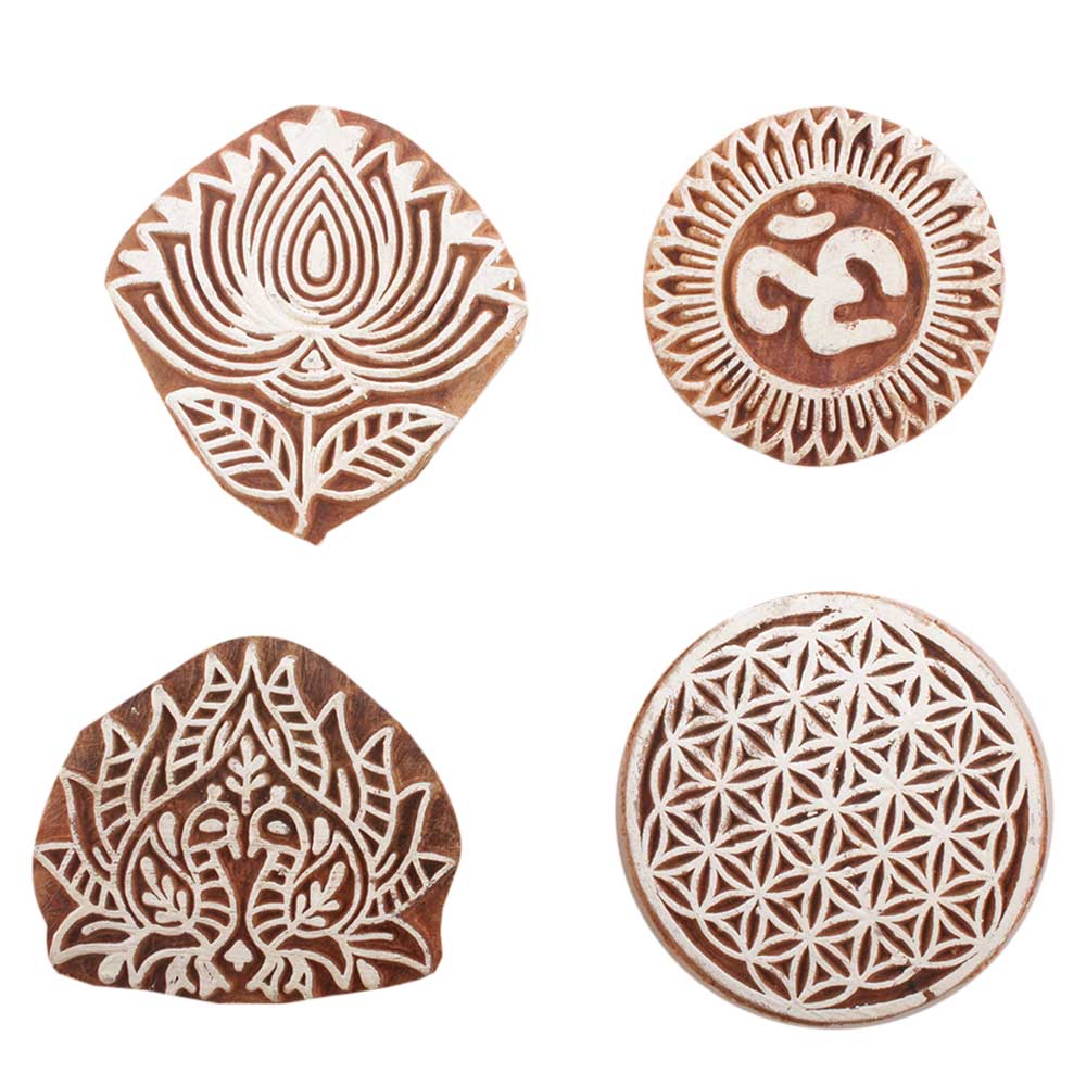 Set of 4 Piece New Mix Wooden Printing Block. Ideal for use on Fabric, Paper, Canvas, etc. These Blocks can be use to Print with Oil Colors, Fabric Colors, Water Colors, Acrylic Colors and Vegetable Colors.