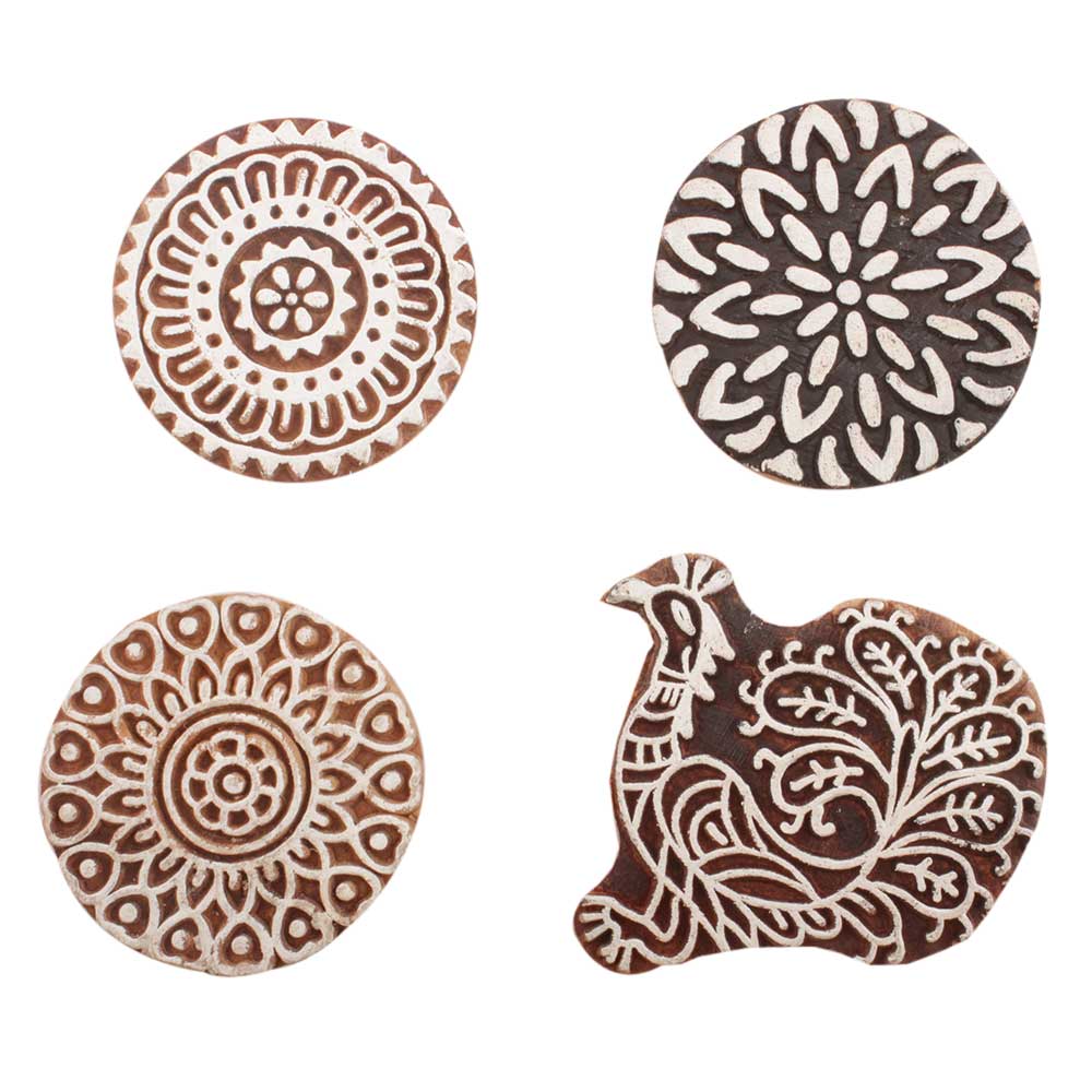 Set of 4 Piece New Mix Wooden Printing Block. Ideal for use on Fabric, Paper, Canvas, etc. These Blocks can be use to Print with Oil Colors, Fabric Colors, Water Colors, Acrylic Colors and Vegetable Colors.