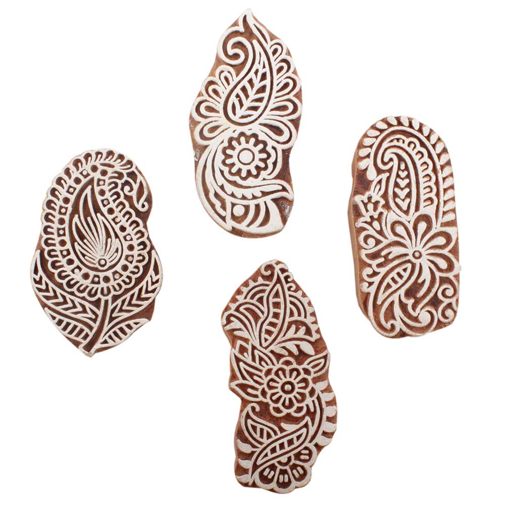 Set of 4 Piece New Mix Wooden Printing Block. Ideal for use on Fabric, Paper, Canvas, etc. These Blocks can be use to Print with Oil Colors, Fabric Colors, Water Colors, Acrylic Colors and Vegetable Colors.