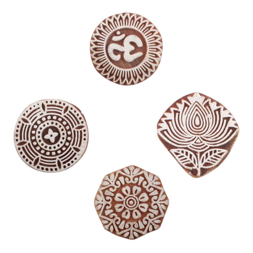 Set of 4 Piece New Mix Wooden Printing Block. Ideal for use on Fabric, Paper, Canvas, etc. These Blocks can be use to Print with Oil Colors, Fabric Colors, Water Colors, Acrylic Colors and Vegetable Colors.
