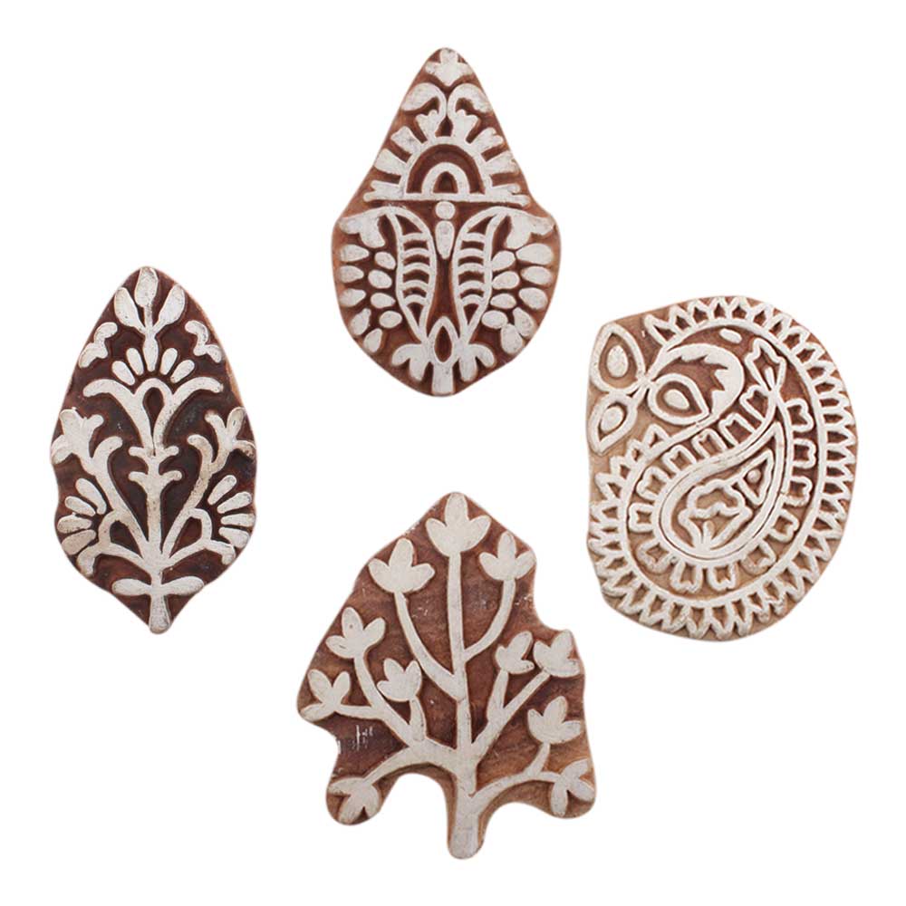 Set of 4 Piece New Mix Wooden Printing Block. Ideal for use on Fabric, Paper, Canvas, etc. These Blocks can be use to Print with Oil Colors, Fabric Colors, Water Colors, Acrylic Colors and Vegetable Colors.
