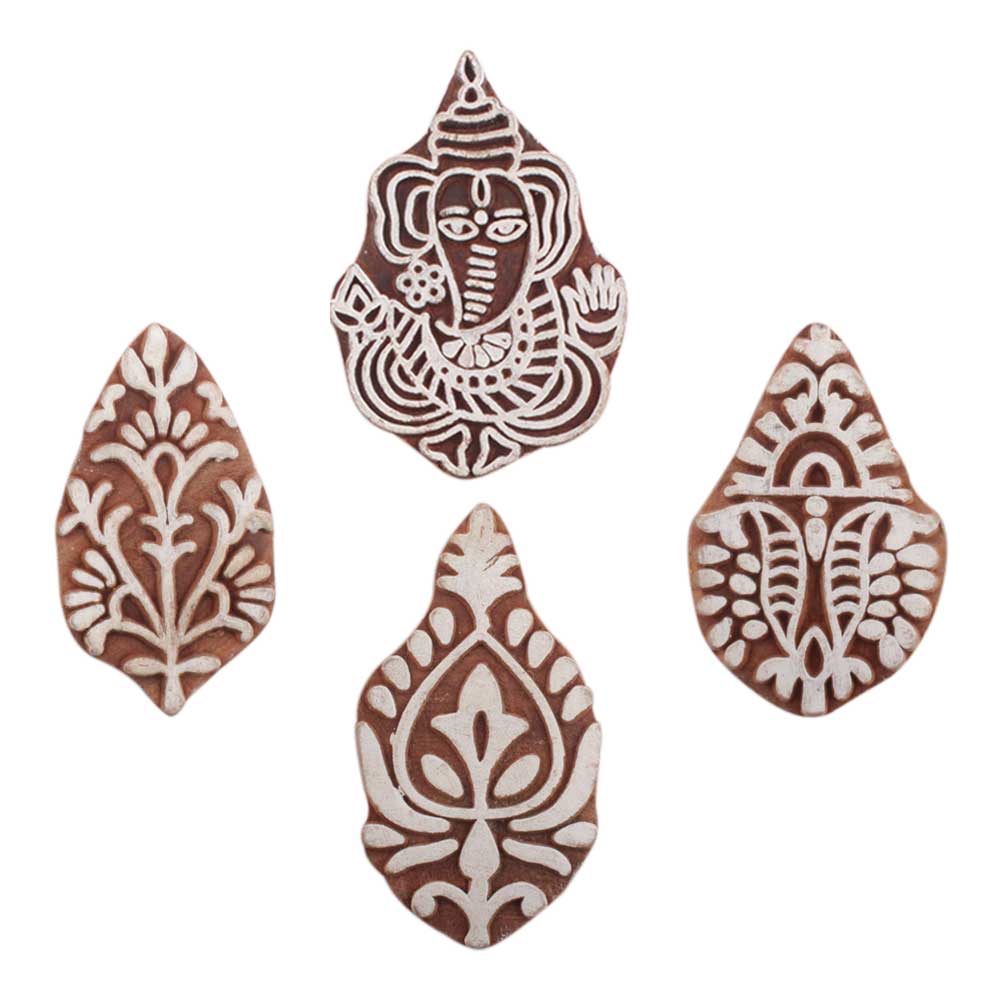 Set of 4 Piece New Mix Wooden Printing Block. Ideal for use on Fabric, Paper, Canvas, etc. These Blocks can be use to Print with Oil Colors, Fabric Colors, Water Colors, Acrylic Colors and Vegetable Colors.
