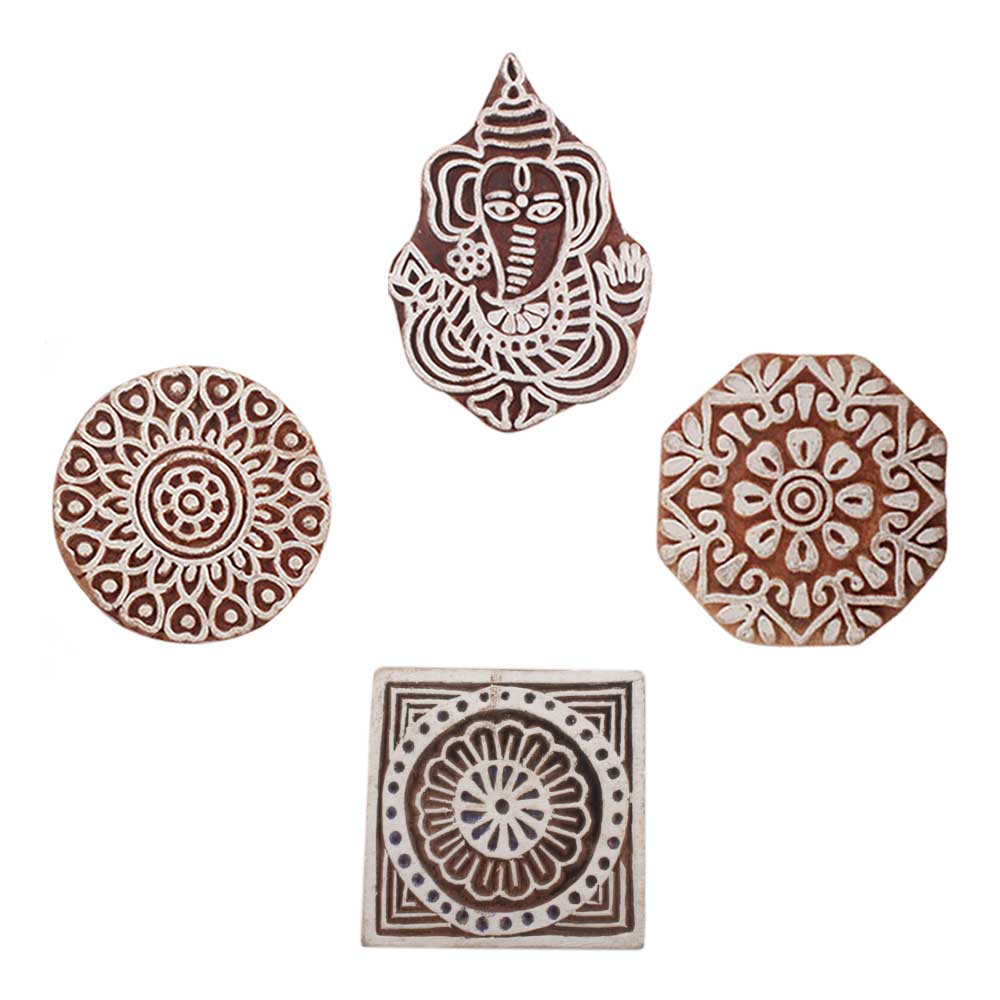 Set of 4 Piece New Mix Wooden Printing Block. Ideal for use on Fabric, Paper, Canvas, etc. These Blocks can be use to Print with Oil Colors, Fabric Colors, Water Colors, Acrylic Colors and Vegetable Colors.