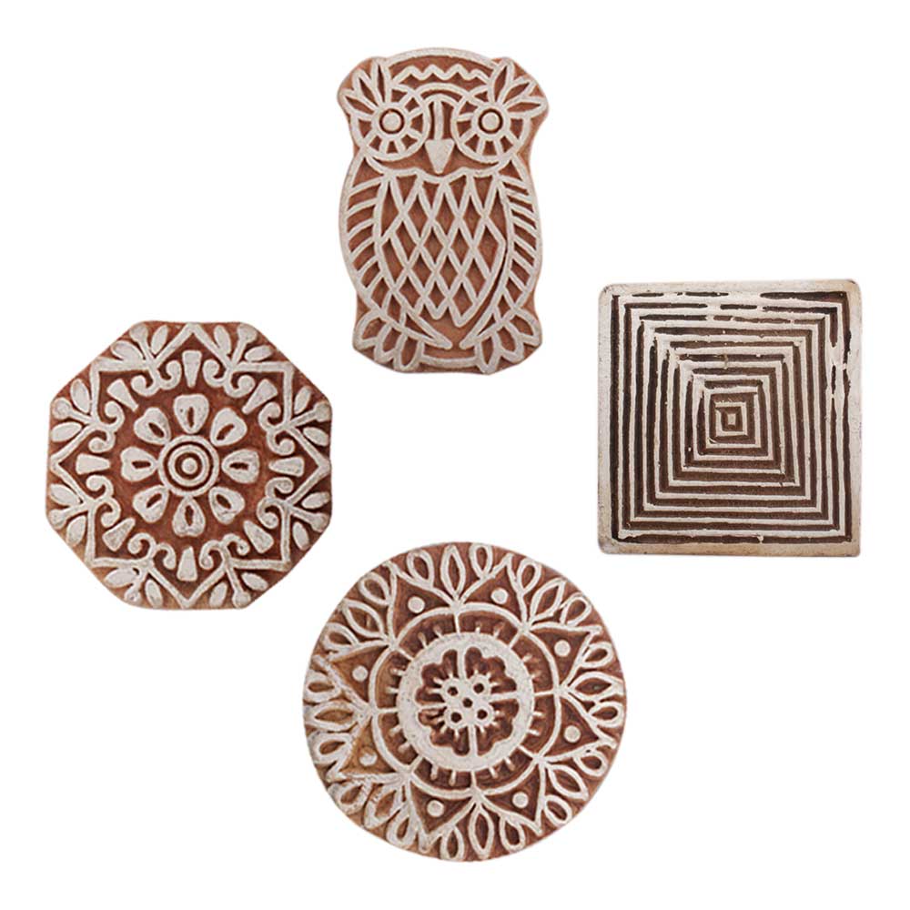 Set of 4 Piece New Mix Wooden Printing Block. Ideal for use on Fabric, Paper, Canvas, etc. These Blocks can be use to Print with Oil Colors, Fabric Colors, Water Colors, Acrylic Colors and Vegetable Colors.