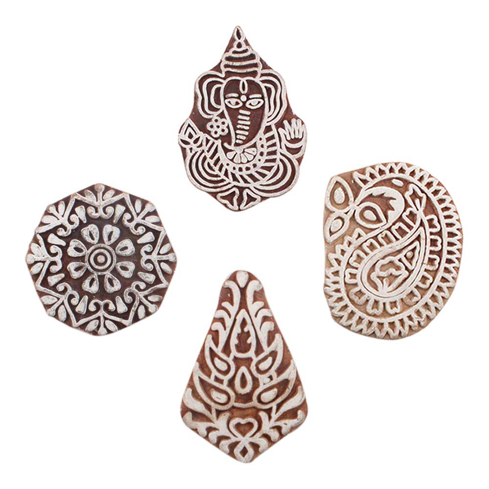 Set of 4 Piece New Mix Wooden Printing Block. Ideal for use on Fabric, Paper, Canvas, etc. These Blocks can be use to Print with Oil Colors, Fabric Colors, Water Colors, Acrylic Colors and Vegetable Colors.