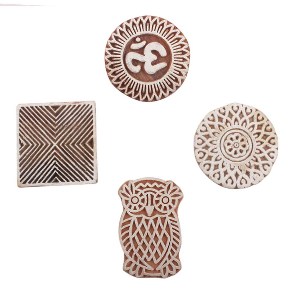 Set of 4 Piece New Mix Wooden Printing Block. Ideal for use on Fabric, Paper, Canvas, etc. These Blocks can be use to Print with Oil Colors, Fabric Colors, Water Colors, Acrylic Colors and Vegetable Colors.