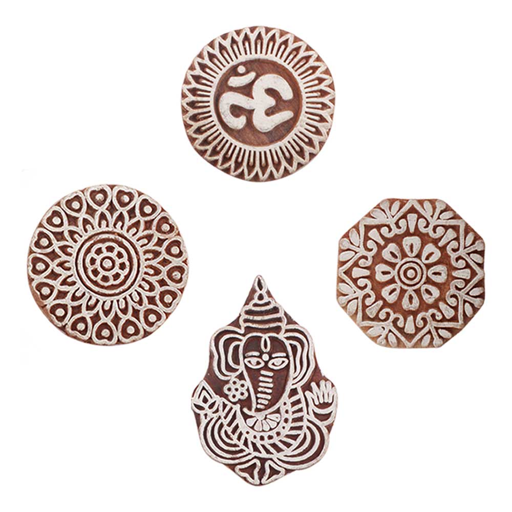 Set of 4 Piece New Mix Wooden Printing Blocks. Ideal for use on Fabric, Paper, Canvas, etc. These Blocks can be use to Print with Oil Colors, Fabric Colors, Water Colors, Acrylic Colors and Vegetable Colors.