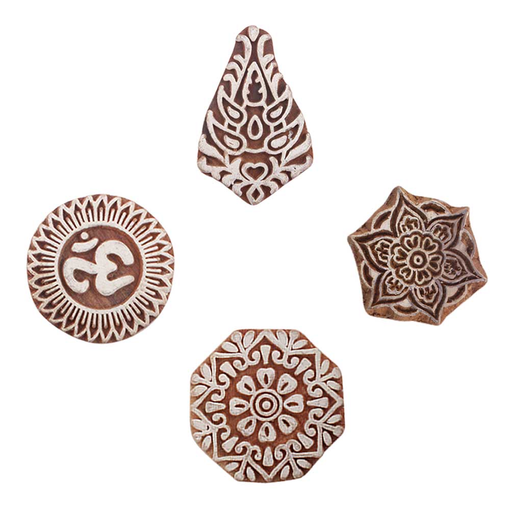 Set of 4 Piece New Mix Wooden Printing Blocks. Ideal for use on Fabric, Paper, Canvas, etc. These Blocks can be use to Print with Oil Colors, Fabric Colors, Water Colors, Acrylic Colors and Vegetable Colors.