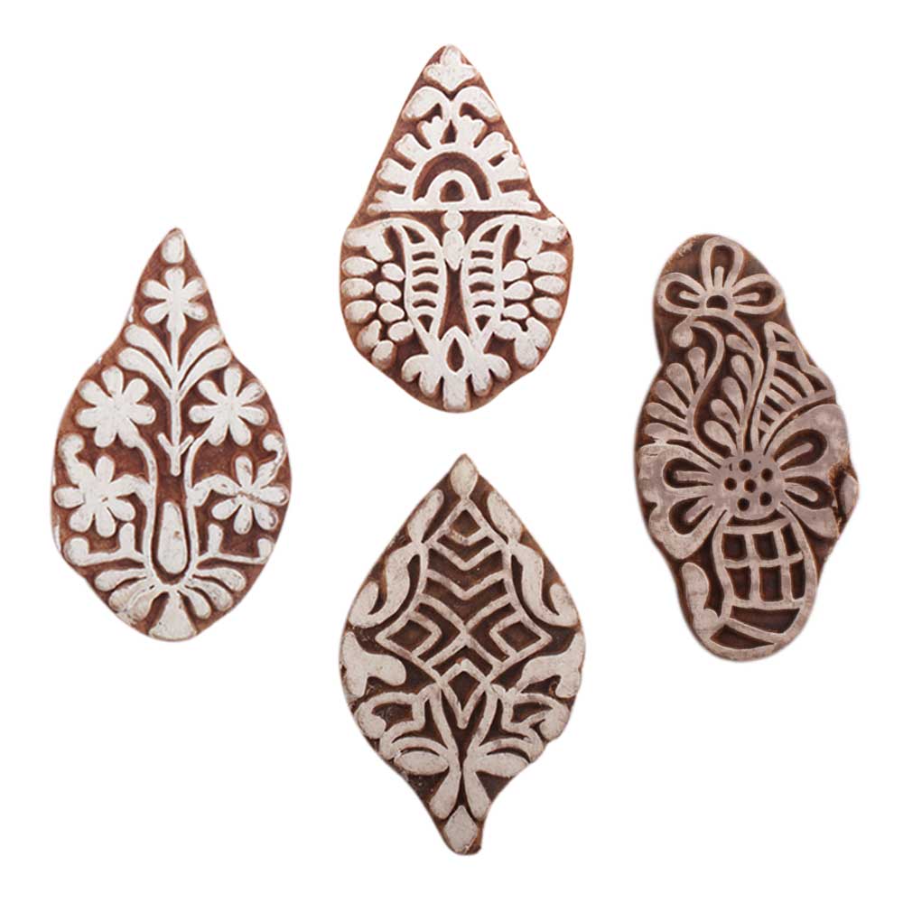 Set of 4 Piece New Mix Wooden Printing Blocks. Ideal for use on Fabric, Paper, Canvas, etc. These Blocks can be use to Print with Oil Colors, Fabric Colors, Water Colors, Acrylic Colors and Vegetable Colors.