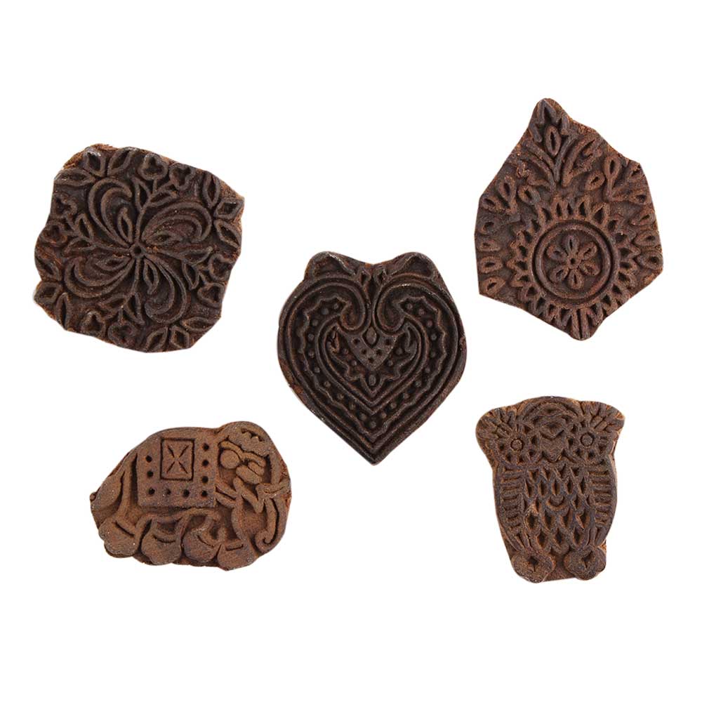 Set of 5 Piece New Mix Wooden Printing Block. Ideal for Using on Fabric, Paper, Canvas, etc. These Blocks can be use to Print with Oil Colors, Fabric Colors, Water Colors, Acrylic Colors and Vegetable Colors.