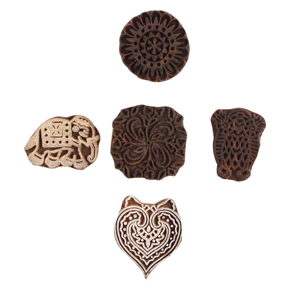 Set of 5 Piece New Mix Wooden Printing Block. Ideal for Using on Fabric, Paper, Canvas, etc. These Blocks can be use to Print with Oil Colors, Fabric Colors, Water Colors, Acrylic Colors and Vegetable Colors.
