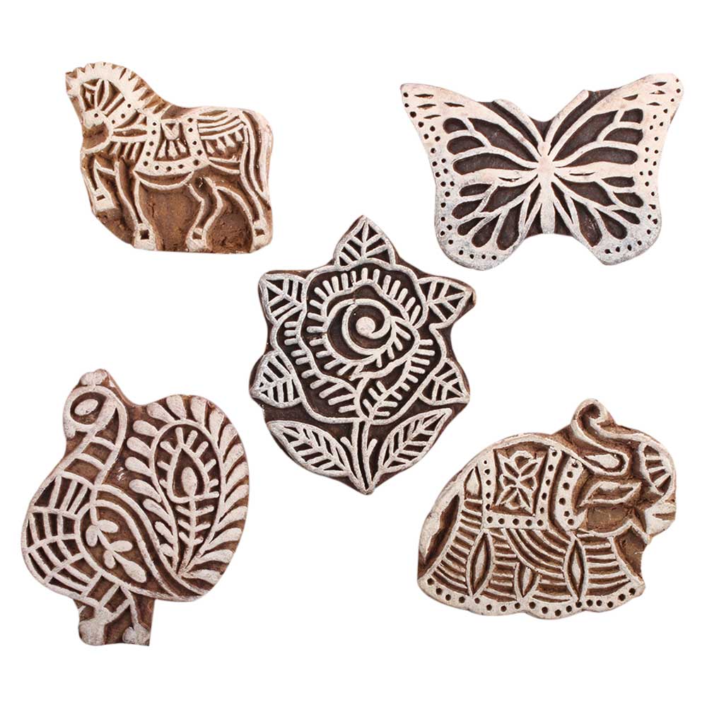 Set of 5 Piece New Mix Wooden Printing Block. Ideal for Using on Fabric, Paper, Canvas, etc. These Blocks can be use to Print with Oil Colors, Fabric Colors, Water Colors, Acrylic Colors and Vegetable Colors.