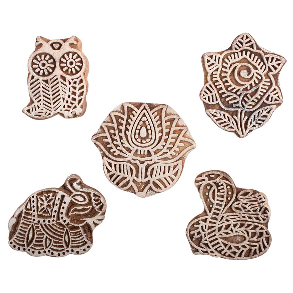 Set of 5 Piece New Mix Wooden Printing Block. Ideal for Using on Fabric, Paper, Canvas, etc. These Blocks can be use to Print with Oil Colors, Fabric Colors, Water Colors, Acrylic Colors and Vegetable Colors.
