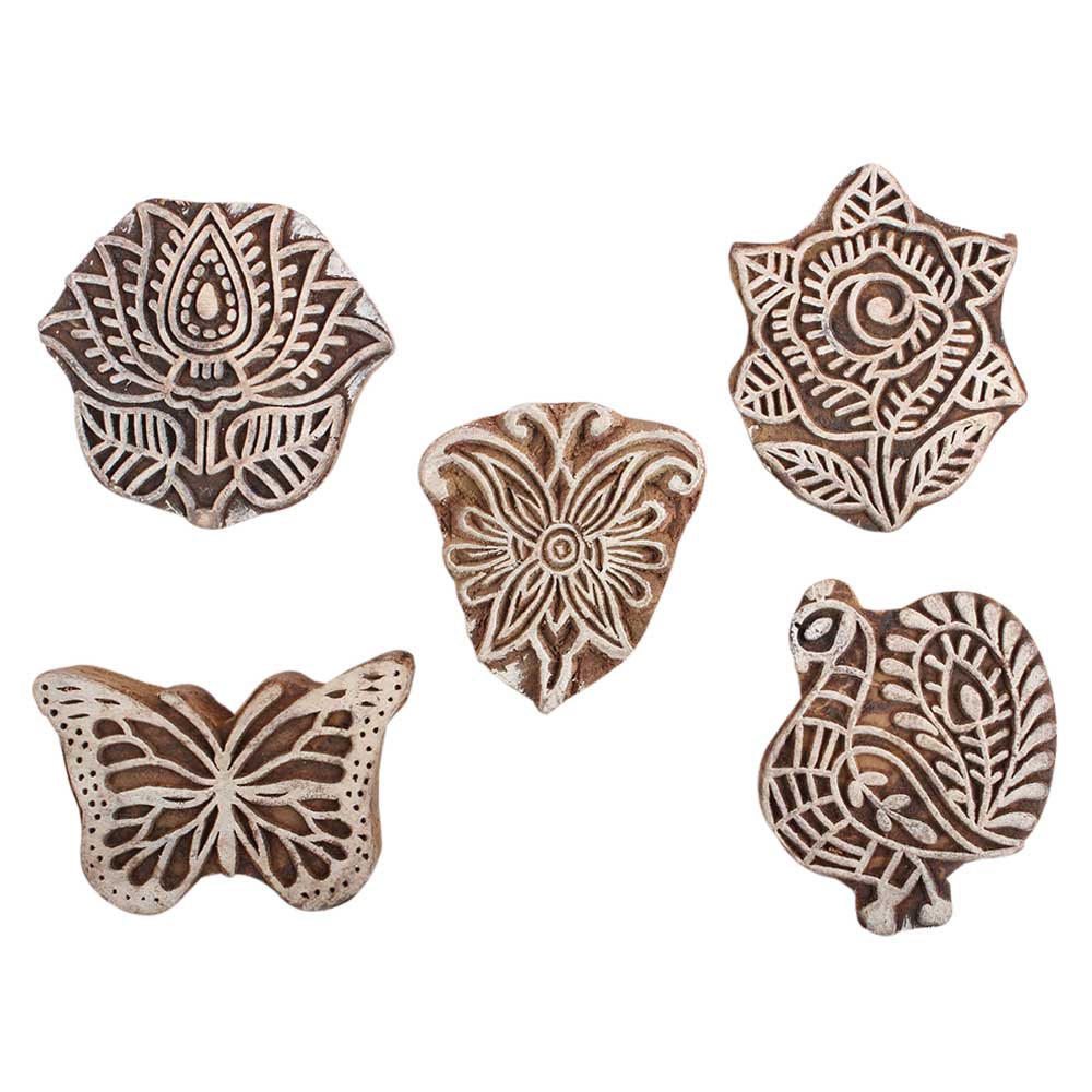 Set of 5 Piece New Mix Wooden Printing Block. Ideal for Using on Fabric, Paper, Canvas, etc. These Blocks can be use to Print with Oil Colors, Fabric Colors, Water Colors, Acrylic Colors and Vegetable Colors.