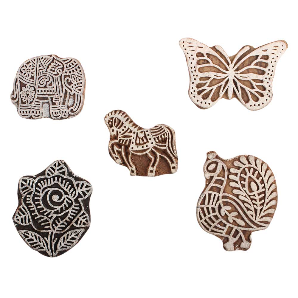 Set of 5 Piece New Mix Wooden Printing Block. Ideal for Using on Fabric, Paper, Canvas, etc. These Blocks can be use to Print with Oil Colors, Fabric Colors, Water Colors, Acrylic Colors and Vegetable Colors.