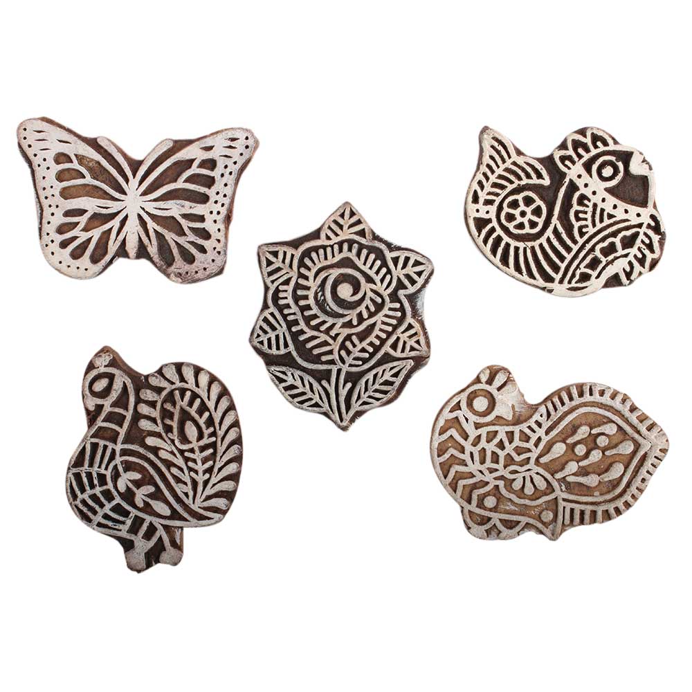 Set of 5 Piece New Mix Wooden Printing Block. Ideal for Using on Fabric, Paper, Canvas, etc. These Blocks can be use to Print with Oil Colors, Fabric Colors, Water Colors, Acrylic Colors and Vegetable Colors.